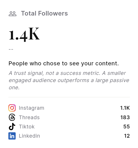 Analytics turns output into signals you can act on: follower quality, comment depth, post history, cadence, and timing all stay connected to the work that created them.
