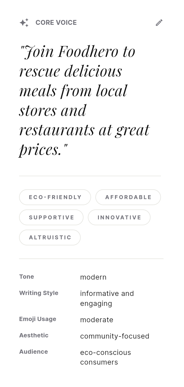 Shape voice, audience, visual identity, memory, and connected channels in one place so content starts with context.